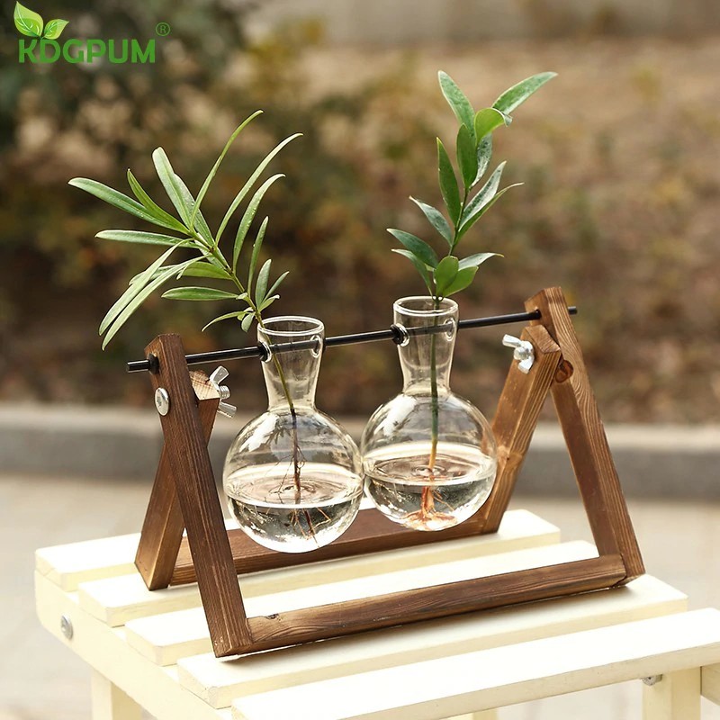 Hydroponic Tabletop Glass Vase Wood Frame In 2020 Glass Flower Vases Terrarium Pots Bottle Terrarium
