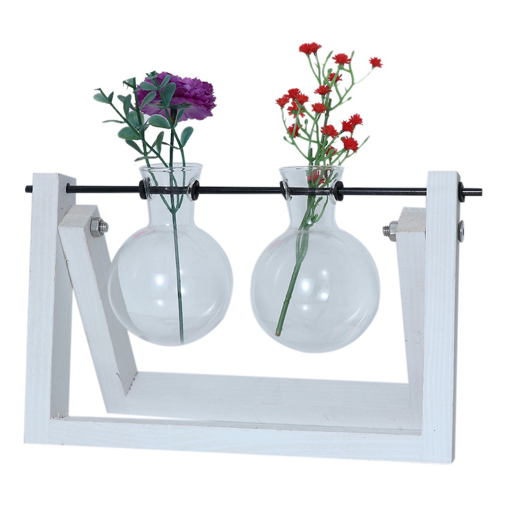Almencla1 Test Tube Glass Vase Hydroponic Vase Wooden Frame Tabletop Vase 3 Shopee Indonesia