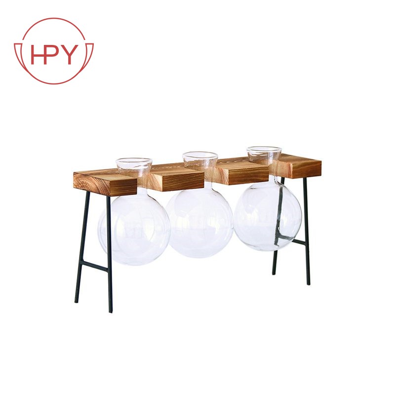 Skysea Hydroponic Vases Solid Desktop Stand Plant Container Bulb Wooden Glass Planter Home Bonsai Decor Plant Vases